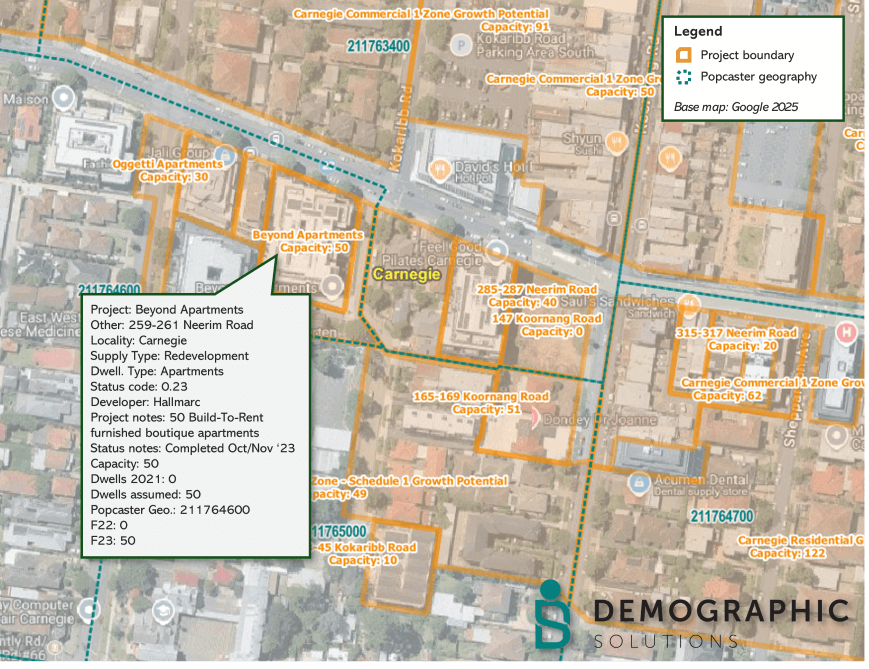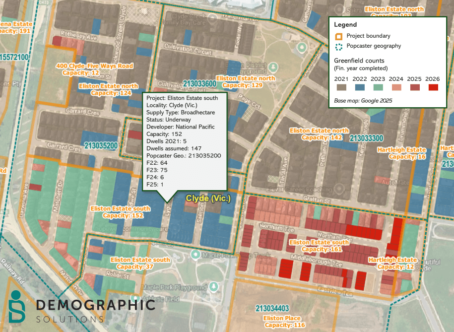 Demographic Solutions (DS) monitors residential development at the site and estate level, with our Residential Supply Layer (RSL) having more than 30,000 discrete residential development polygons across Victoria. This number is growing and changing every week.